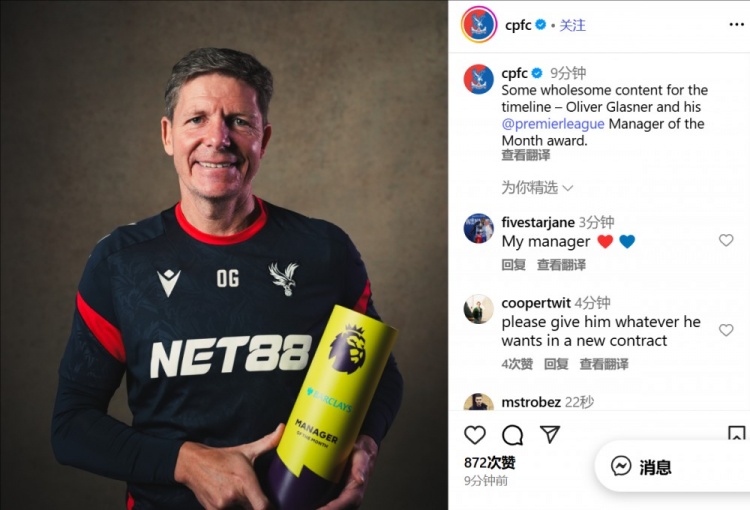 2025-10-15 00:00:409月英超不败!水晶宫主帅格拉斯纳领取9月份英超最佳教练奖